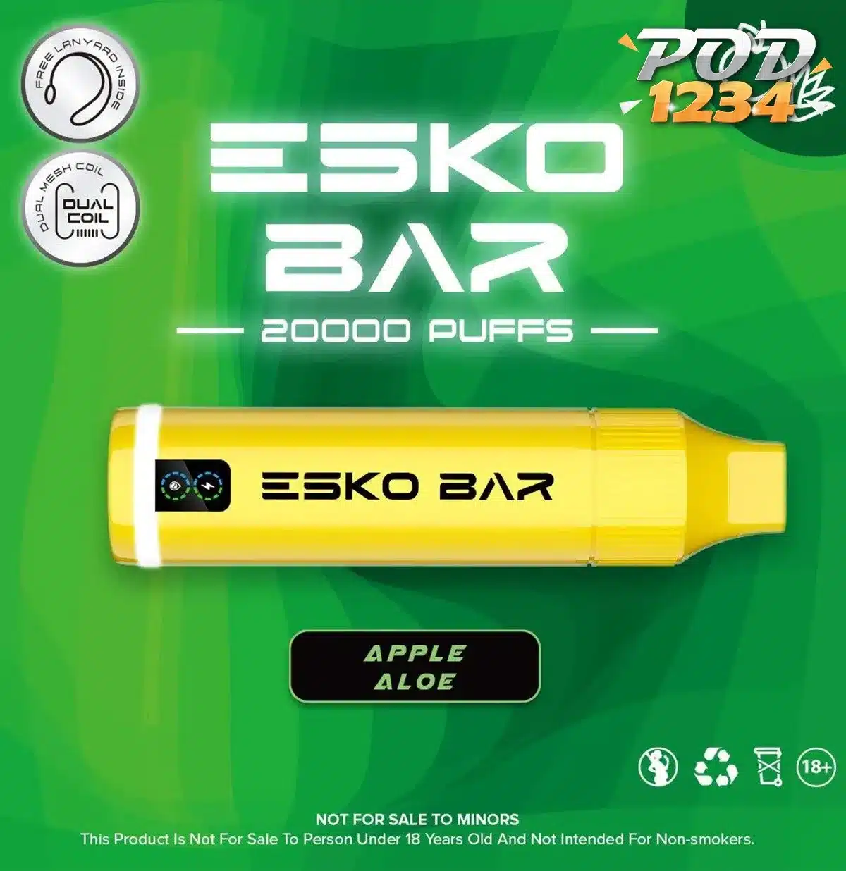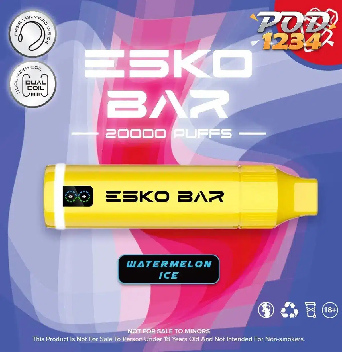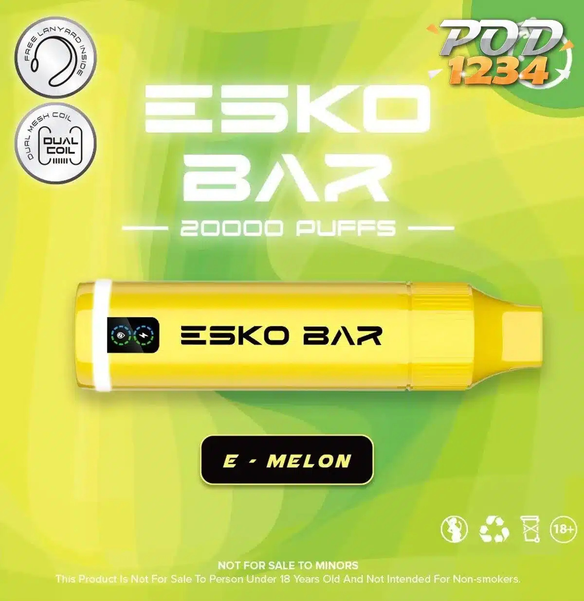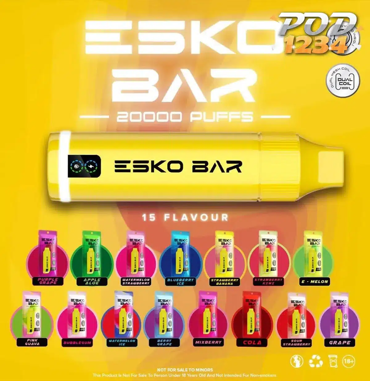 Esko Bar 20000คำ ราคาส่ง เป็น พอตใช้แล้วทิ้ง รุ่นใหม่ล่าสุด ที่มีความนิยมมากในช่วงนี้ จำนวนคำ 20000Puffs ขอแนะนำเลยครับ Esko Bar พอตรุ่นนี้มาพร้อมกับ คอยล์ Dual Mesh Coil ที่ขึ้นชื่อเรื่องกลิ่นและรสาติเป็นอย่างดี Esko Bar 20000 Puffs ปริมาณน้ำยา 18ml จำนวนคำมากเลยทีเดียว และแบตเตอรี่ 600mAh สามารถใช้งานได้ตลอดทั้งวัน และยังไม่หมดเพียงเท่านี้ มาพร้อมกับหน้าจอ LED แจ้งสถานะ ปริมาณน้ำยา และ แบตเตอรี่