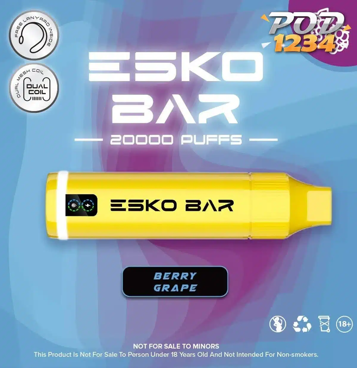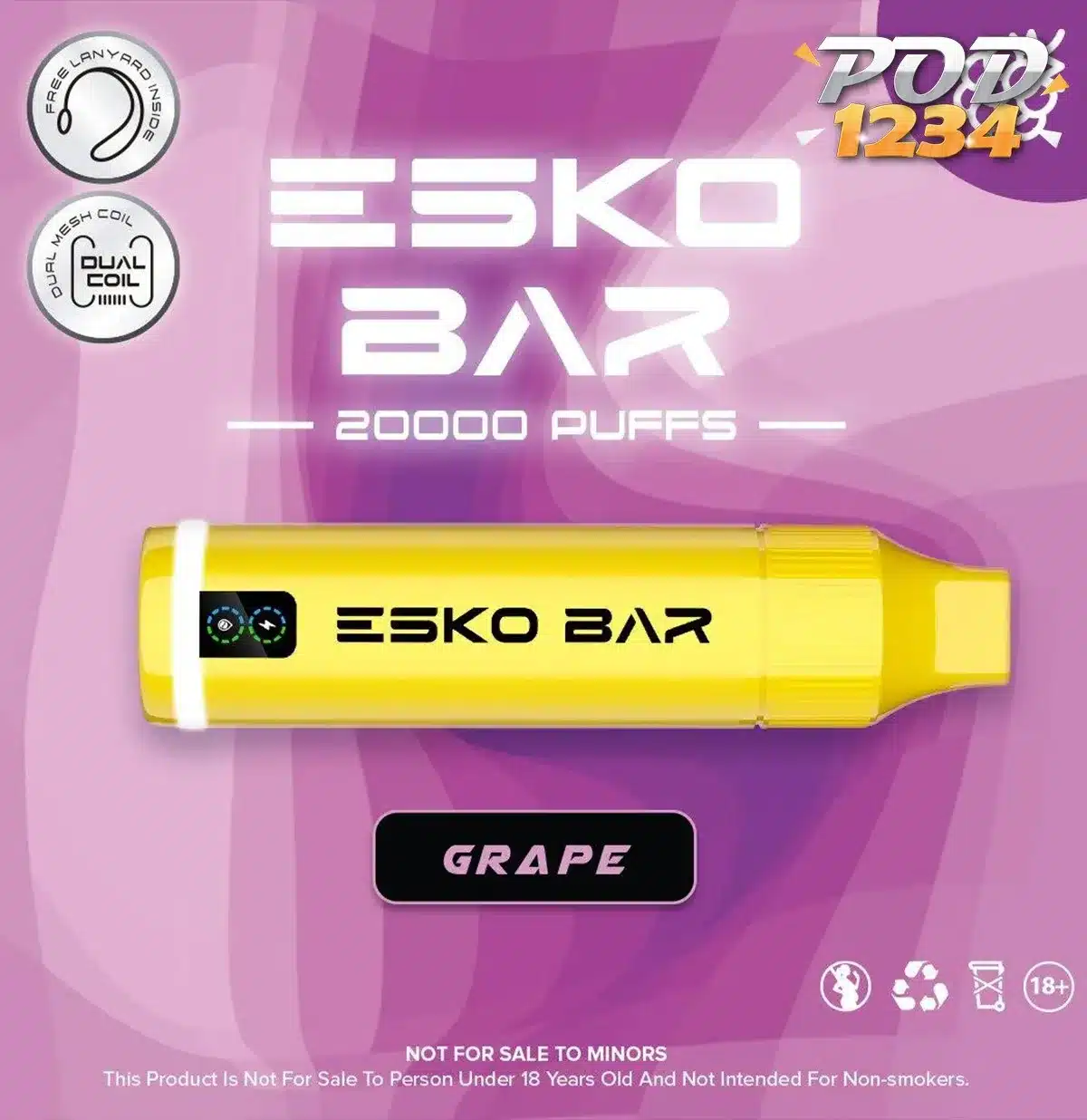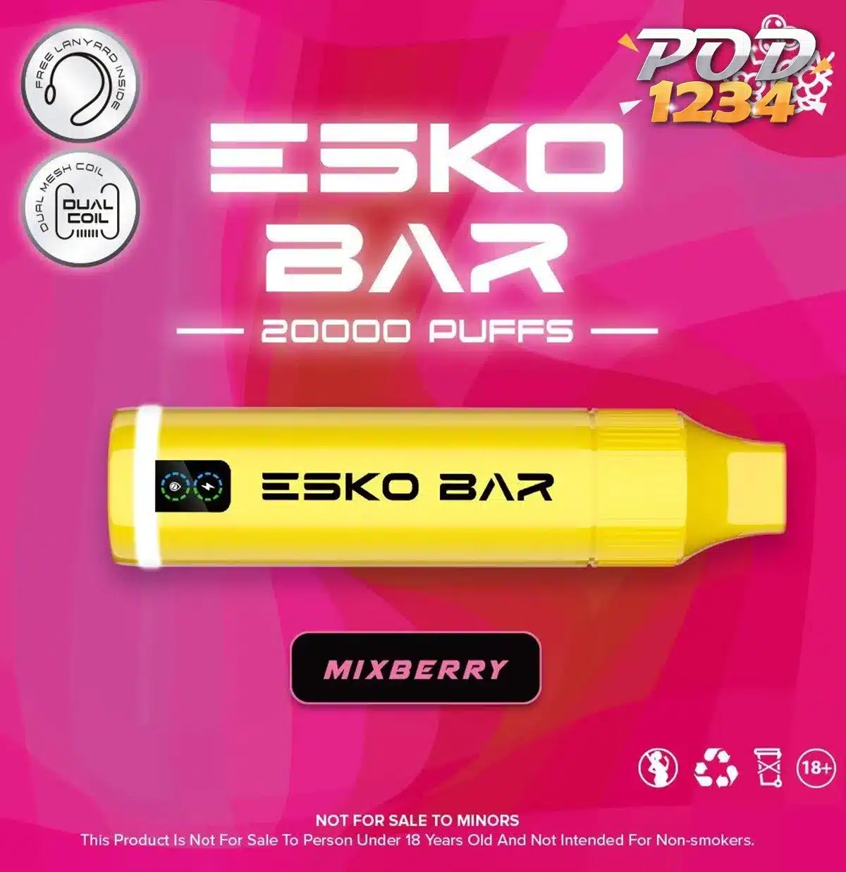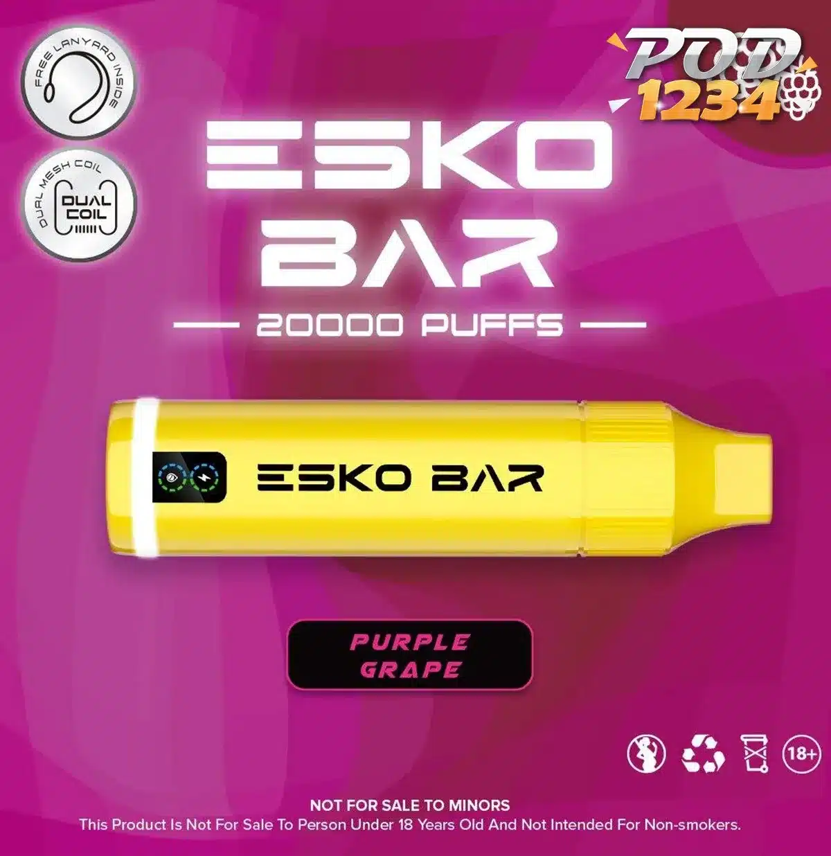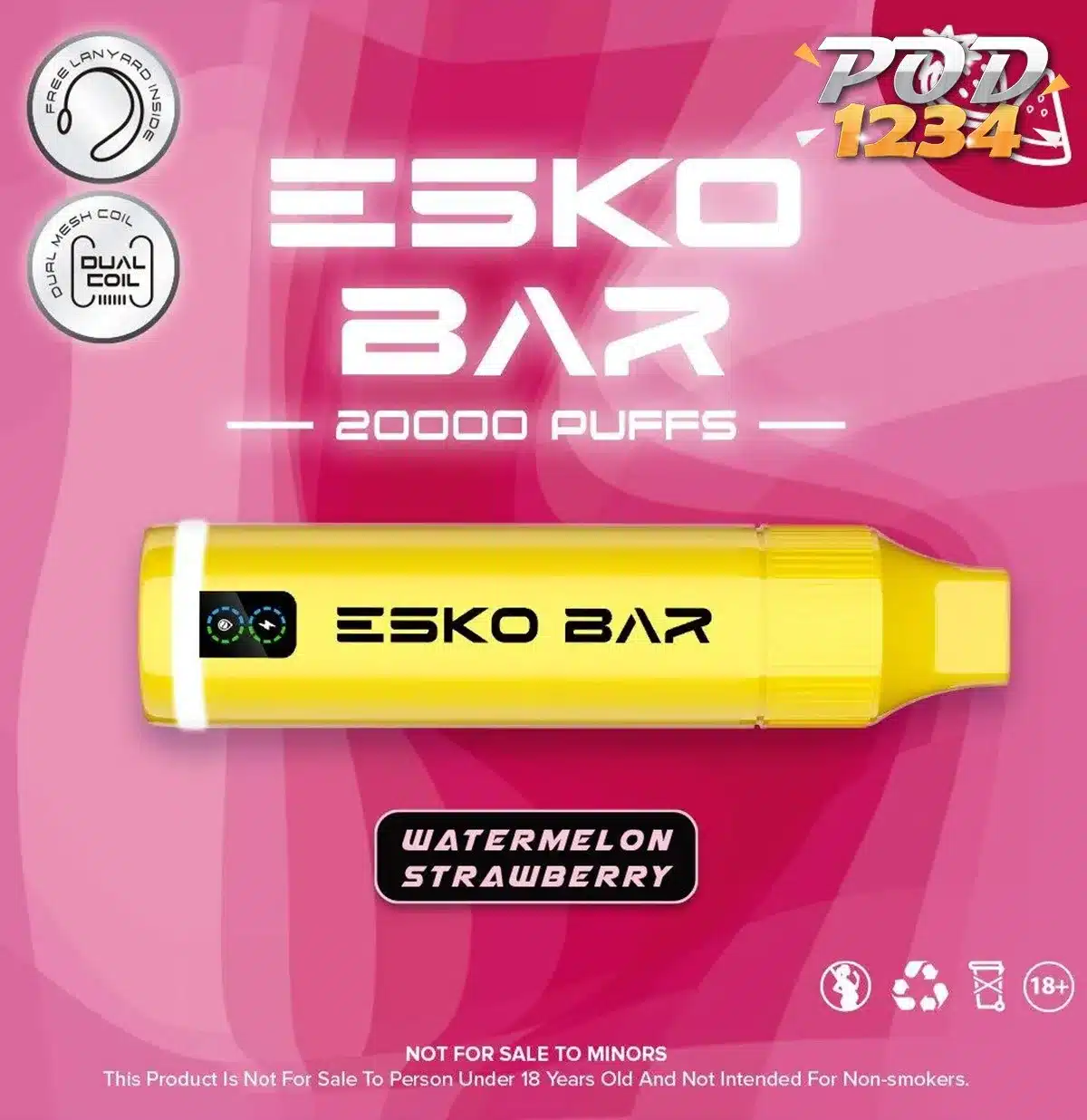 Esko Bar 20000คำ ราคาส่ง เป็น พอตใช้แล้วทิ้ง รุ่นใหม่ล่าสุด ที่มีความนิยมมากในช่วงนี้ จำนวนคำ 20000Puffs ขอแนะนำเลยครับ Esko Bar พอตรุ่นนี้มาพร้อมกับ คอยล์ Dual Mesh Coil ที่ขึ้นชื่อเรื่องกลิ่นและรสาติเป็นอย่างดี Esko Bar 20000 Puffs ปริมาณน้ำยา 18ml จำนวนคำมากเลยทีเดียว และแบตเตอรี่ 600mAh สามารถใช้งานได้ตลอดทั้งวัน และยังไม่หมดเพียงเท่านี้ มาพร้อมกับหน้าจอ LED แจ้งสถานะ ปริมาณน้ำยา และ แบตเตอรี่