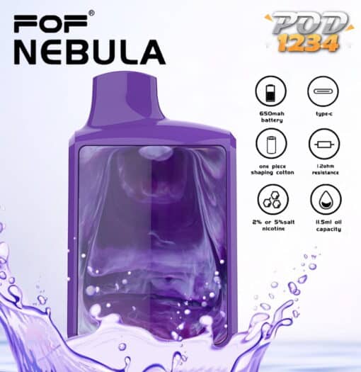 FOF Nebula 4000 Puff ราคาส่ง เป็น พอตใช้แล้วทิ้ง ที่สามารถสูบได้ 4000 คำ เป็นแบตในตัวขนาด 650mAh ชาร์จได้ด้วยสาย USB Type – C ชาร์จไวสุดๆ และ FOF Nebula 4000 คำ จะมีน้ำยาบรรจุภายในตัวเครื่องขนาด 11.5ml มีปริมาณ สารนิโคติน อยู่ที่ 20mg หรือ 2% แถมยัง มีรสชาติให้เลือกมากมายถึง 12 รสชาติ ให้กลิ่นหอม รสชาติหวานเข้มข้น เต็มปอดสุดๆ ราคาถูกมากๆ ห้ามพลาด