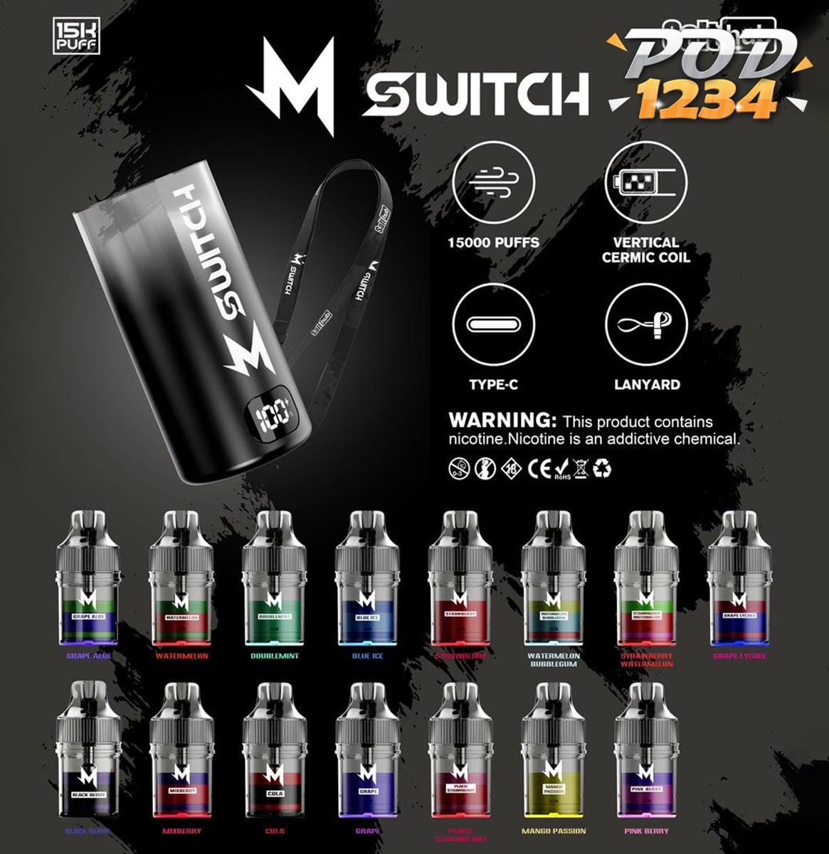 เครื่องเปล่า M Switch 15k ราคาส่ง เป็นพอตใช้แล้วทิ้ง เปลี่ยนหัวได้ จากทางแบรนด์ยอดฮิตอย่าง Salt Hub โดยตัวเครื่องได้ถูกออกแบบมาให้ มีขนาดเล็กกระทัดรัด พกพาได้สะดวกสุดๆ แถมยังสามารถใช้งานร่วมกับ หัวน้ำยา M Switch 15k ได้อีกด้วย แถมยังสามารถใช้งานได้ง่ายมากๆ มือใหม่ก็ใช้งานเป็นแน่นอน และ ตัวเครื่อง M Switch 15k จะมีแบตเตอรี่ ที่อยู่ภายในตัวเครื่องถึง 600 mAh สามารถใช้งานได้นาน ตลอดทั้งวัน ของแท้ 100%