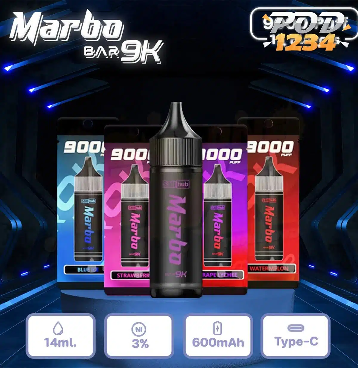 Marbo Bar 9000 Puff ราคาส่ง เป็น พอตใช้แล้วทิ้ง จากทางแบรนด์ Salt Hub ที่มีรูปทรงขวดน้ำยา ดูเท่ ทันสมัยสุดๆ โดยตัวเครื่อง Marbo Bar 9000 Puff จะเป็นแบตเตอรี่ภายในตัวขนาด 600mAh ชาร์จได้ด้วยาย USB Type – C ชาร์จไว แบตเต็มเร็ว และ ตัวเครื่อง จะสามารถสูบได้มากถึง 9000 ครั้ง ซึ่ง ตัวเครื่อง Marbo Bar 9000 ครั้ง จะมีน้ำยาบรรจุ ภายในตัวเครื่องขนาด 14ml พร้อมใช้งาน มีรสชาติให้เลือกมากถึง 15 รสชาติ มีปริมาณ สารนิโคติน อยู่ที่ 30mg หรือ 3% ให้กลิ่นหอม รสชาติหวาน เข้มข้น ชัดเจน เต็มปอดไวสุดๆ แถมมีราคาถูกมาก