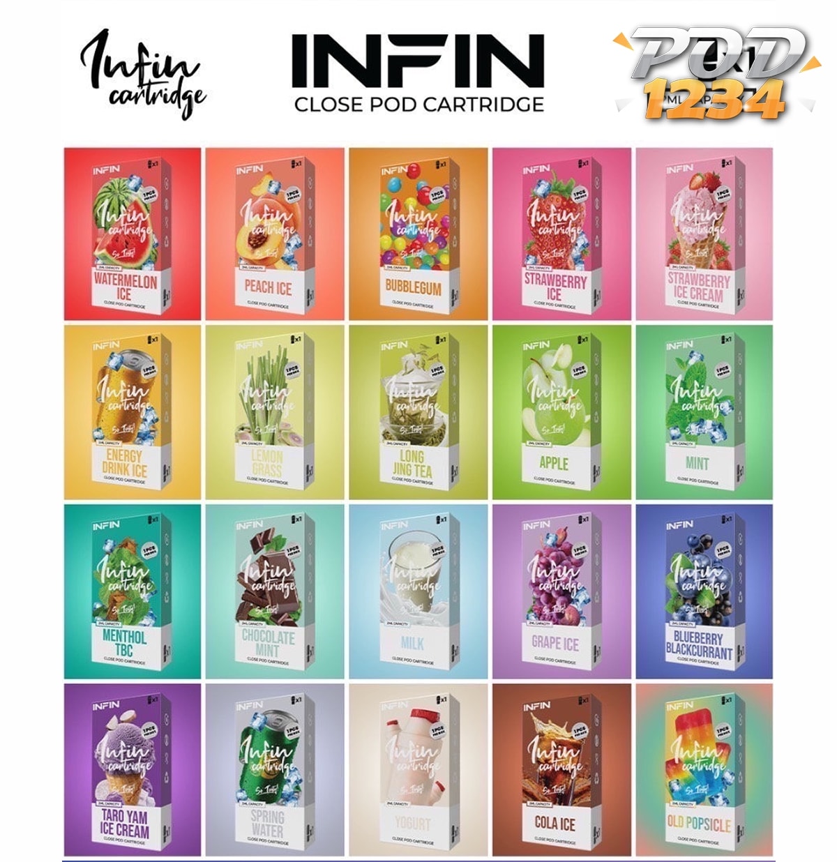หัวพอต Infin Pod ราคาส่ง เป็น หัวพอต พร้อมน้ำยาบรรจุภายในตัวขนาด 2ml มีระดับ สารนิโคติน อยู่ที่ 30mg หรือ 3% สูบแล้ว อิ่มควันไว ให้กลิ่นหอม รสชาติหวานเข้มข้น แถมยัง มีรสชาติ ให้เลือกเยอะสุดๆ มีให้เลือกมากมายถึง 20 รสชาติ ขอแนะนำเลย สำหรับ พอตเปลี่ยนหัว ที่สวมใส่ Infinity ได้ ห้ามพลาดเลย ใช้งานง่าย ถอดเปลี่ยน ไม่ยุ่งยาก ห้ามพลาดเลยครับ